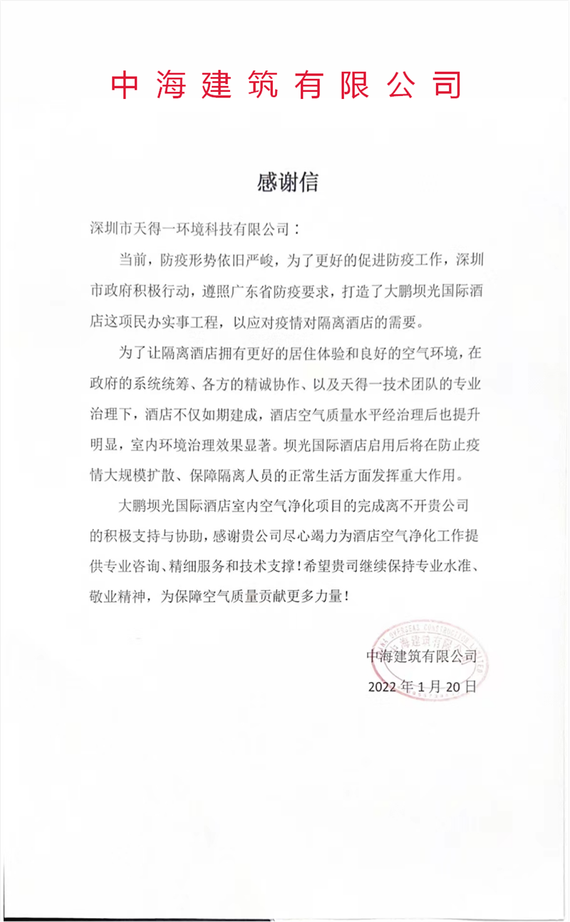 位于深圳宝安区的湾区会展国际酒店是深圳市政府重金打造的国际化大型酒店,建成后将成为深圳第一、并且有可能成为全国第一的建设速度最快的三星级隔离酒店。针对宝安国际会展酒店现场TVOC超标、异味较大的空气问题,k8凯发(中国)天生赢家一触即发采取了污染源头治理、间歇通风烘烤、空气净化设备巩固的操作方案。一个月的时间内,k8凯发(中国)天生赢家一触即发高标准高质量高效率地完成了所有楼栋的室内空气治理和净化,并通过了深圳生态局组织的室内空气质量检测,全部完成验收,为深圳疫情防控贡献了企业力量。