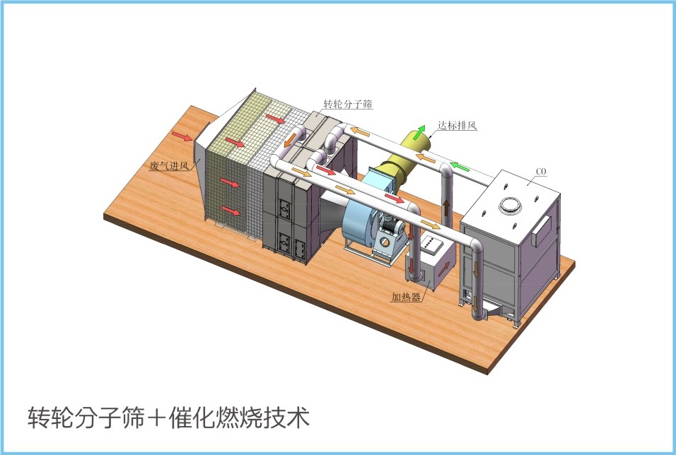 5、转轮分子筛吸附+RTO/RCO/CO组合法