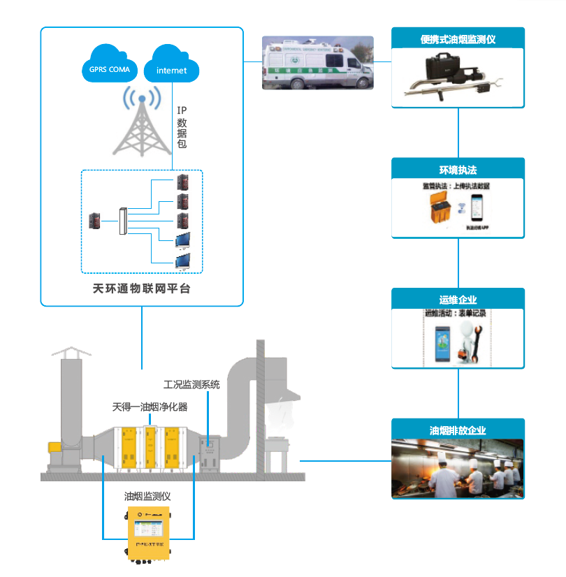 监测范围:油烟浓度、颗粒物浓度、非甲烷总烃浓度、风机及净化器