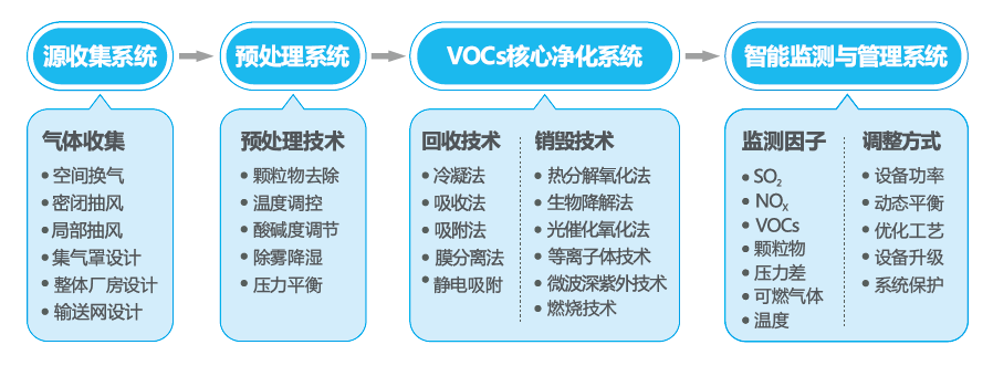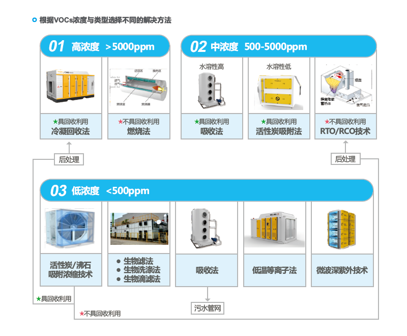 根据VOCs浓度与类型选择不同的解决方法。