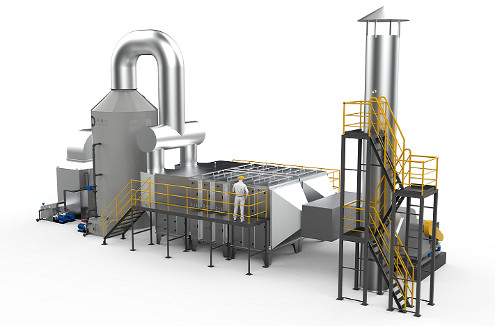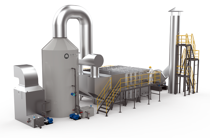 大型干式电除尘设备,是我司根据实际工况定制研发的工业烟尘治理系统,其利用静电力实现颗粒物与气流的分离,主要通过“荷电-沉降-反吹清洗再生”三步实现工业烟尘废气的高效净化处理,具备高频脱附模块对集尘板进行浓缩脱附功能,吸附在模块上的粉尘通过底部灰斗和集尘机完成清洗再生。