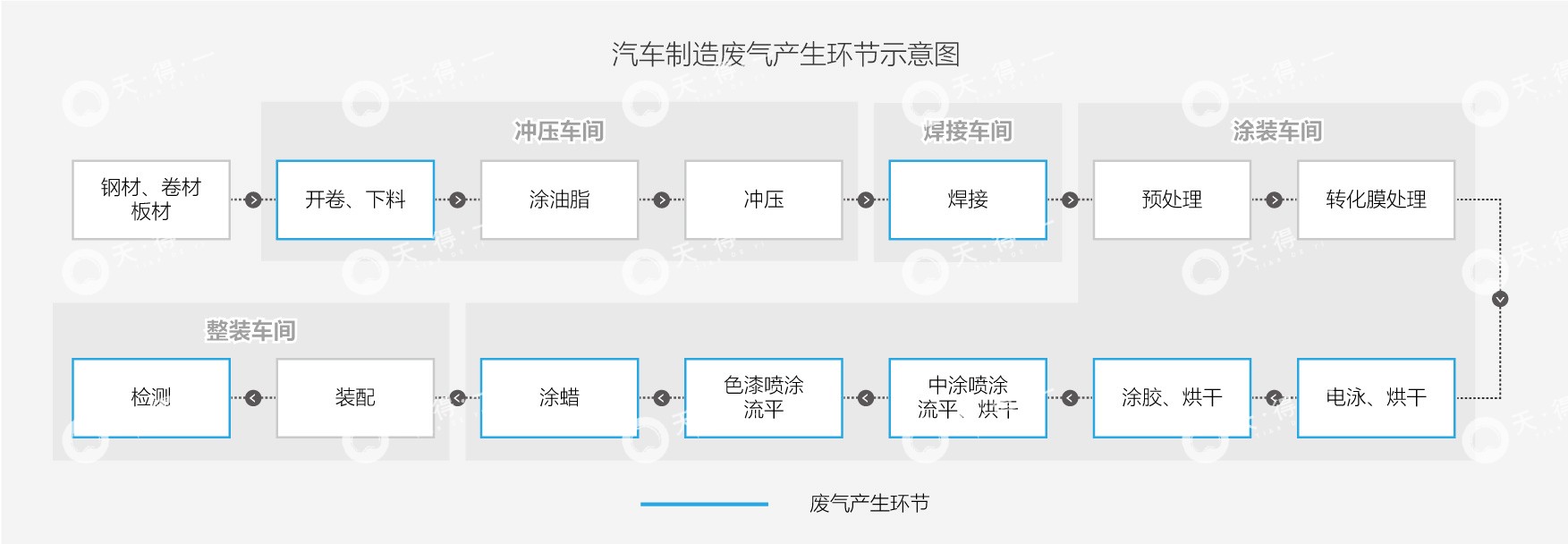 汽车整车与零部件制造业是汽车工业发展的基础,行业废气涵盖挥发性有机物(VOCs)、颗粒物、氮氧化物(NOx)、二氧化硫(SO₂)等多种污染物,且不同工艺如涂装、焊接、注塑排放差异显著。行业排放呈现鲜明特点:与生产节奏深度绑定,随工序启停呈现强间歇性波动;治理难点在于无组织排放占比突出,焊接 / 注塑等开放式操作导致废气逸散,捕集难度大,需依赖车间密闭与局部集气系统改善;并存在爆炸风险,涂装废气中存在易燃易爆的有机组分。